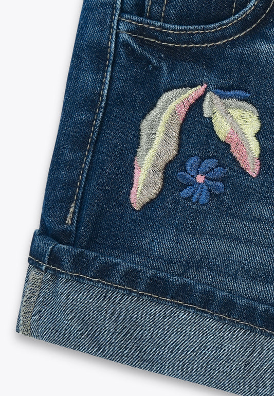 Shorts con Ricami di Denim Repreve